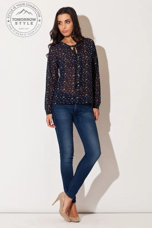 • Luftige Eleganz: Gemusterte Langarmbluse