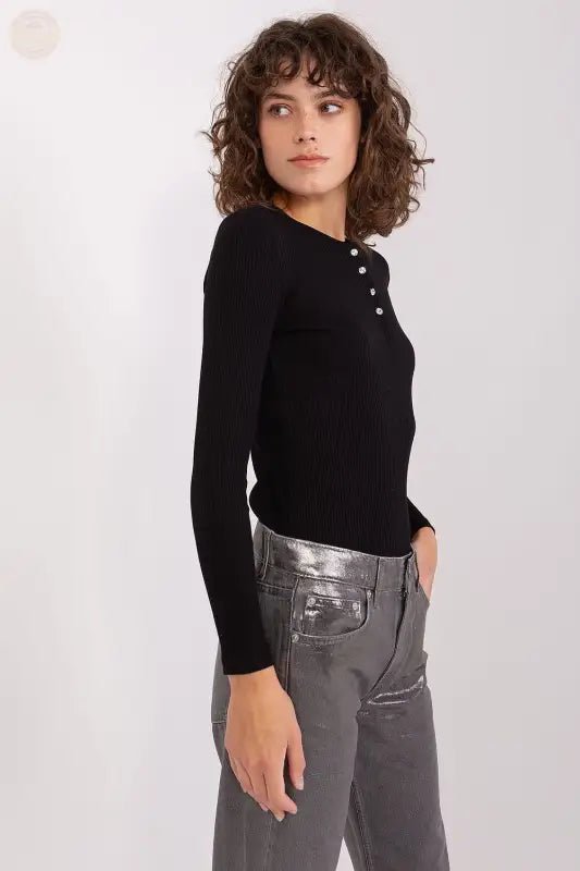 • Ribbed blouse with structured charm