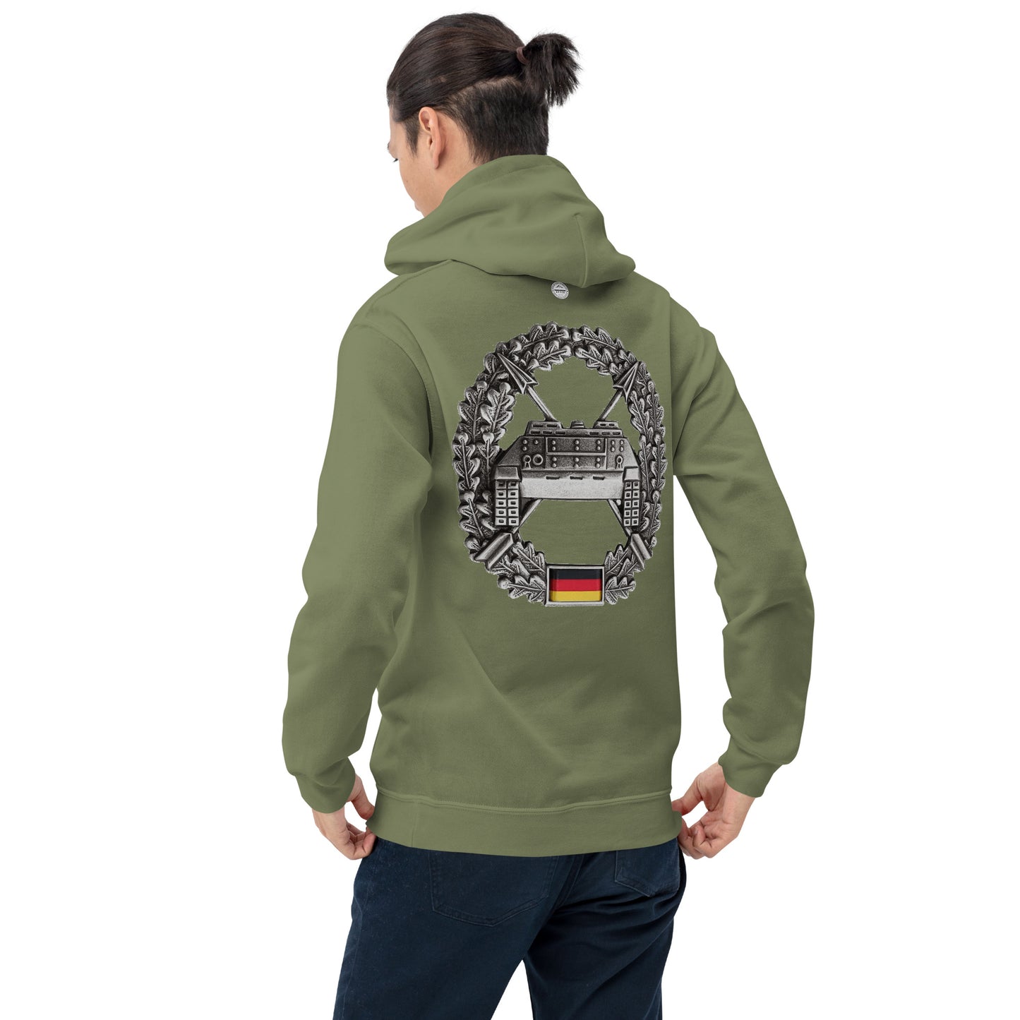 Bundeswehr-Hoodie mit Stickerei und bedrucktem Panzerjäger-Abzeichen hinten