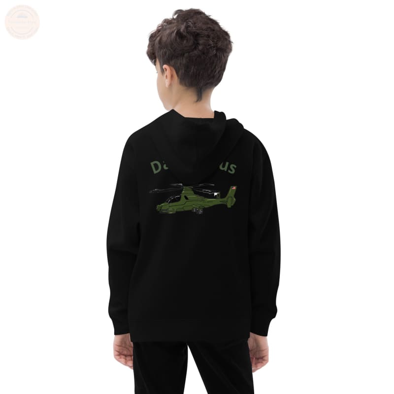 Adventure-ready youth hoodie with embroidered sleeves